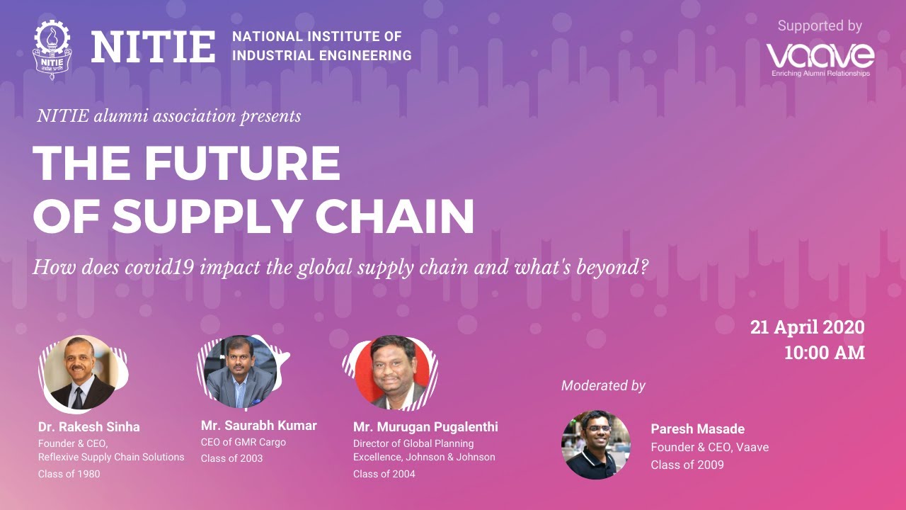 It gives NITIE Mumbai great pleasure in bringing together the brightest minds in the supply chain industry to enlighten us with how COVID-19 shall impact and become the new normal in the supply chain domain. Although the pandemic has distanced us socially, yet we are bestowed with the best of technology to remain entrenched intellectually. The session would be really helpful to all individuals wondering about the fate of the supply chain due to current unavoidable circumstances put forth and would provide us with new perspectives about how future developments shall take place. The session would entail participation of three distinguished NITIE alumnus- Dr. Rakesh Sinha, Mr. Saurabh Kumar, Mr. Murugan Pugalenthi, experts in the supply chain domain as speakers along with our coveted NITIE alumnus, Mr. Paresh Masade, who would be the moderator for the session.